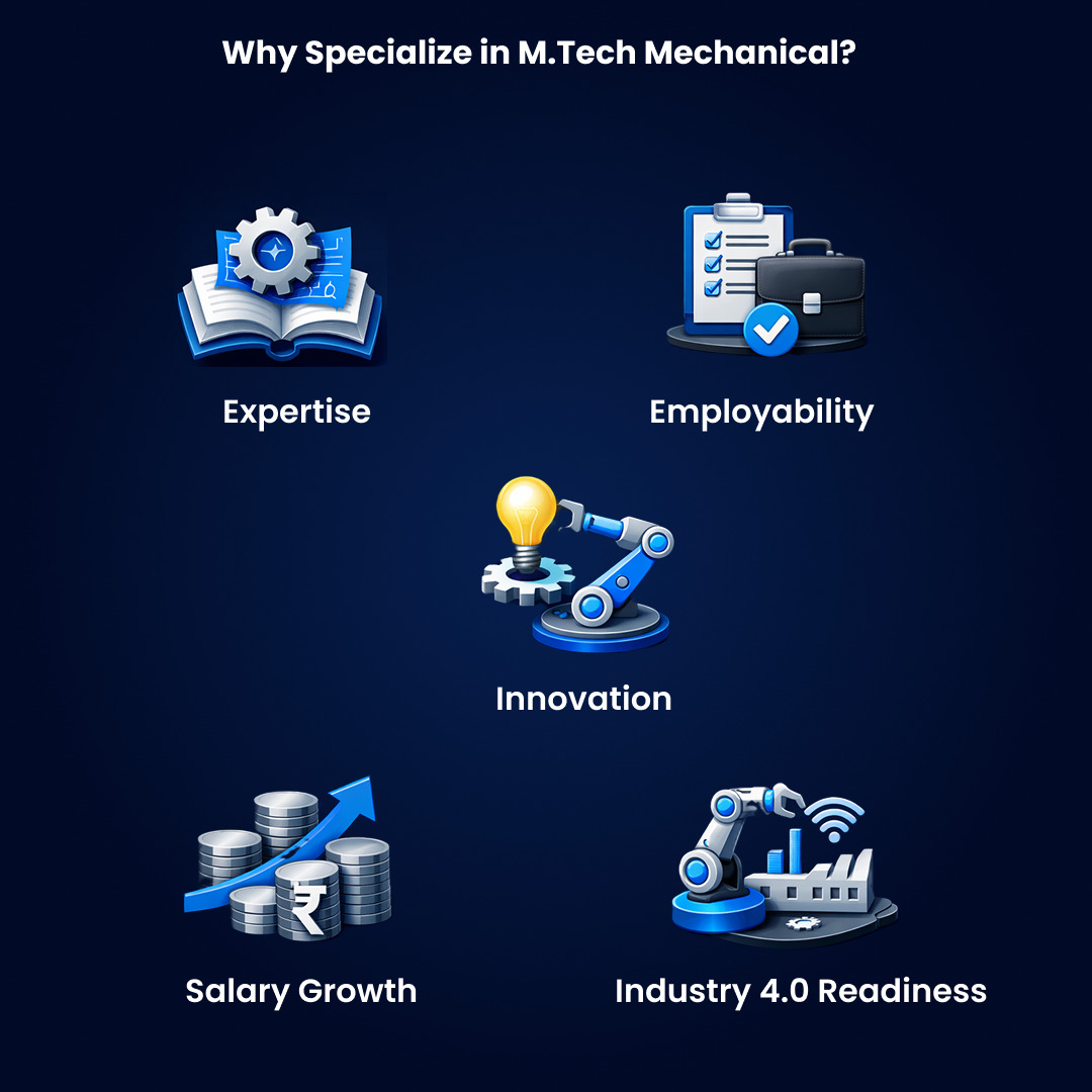 Since we have established that a world without Mechanical engineering would devolve into pure chaos, here’s why an M.Tech in Mechanical Engineering might be the right next step for you. From the specialisations available to why this degree holds its ground in an AI-driven world, here’s everything you need to know.